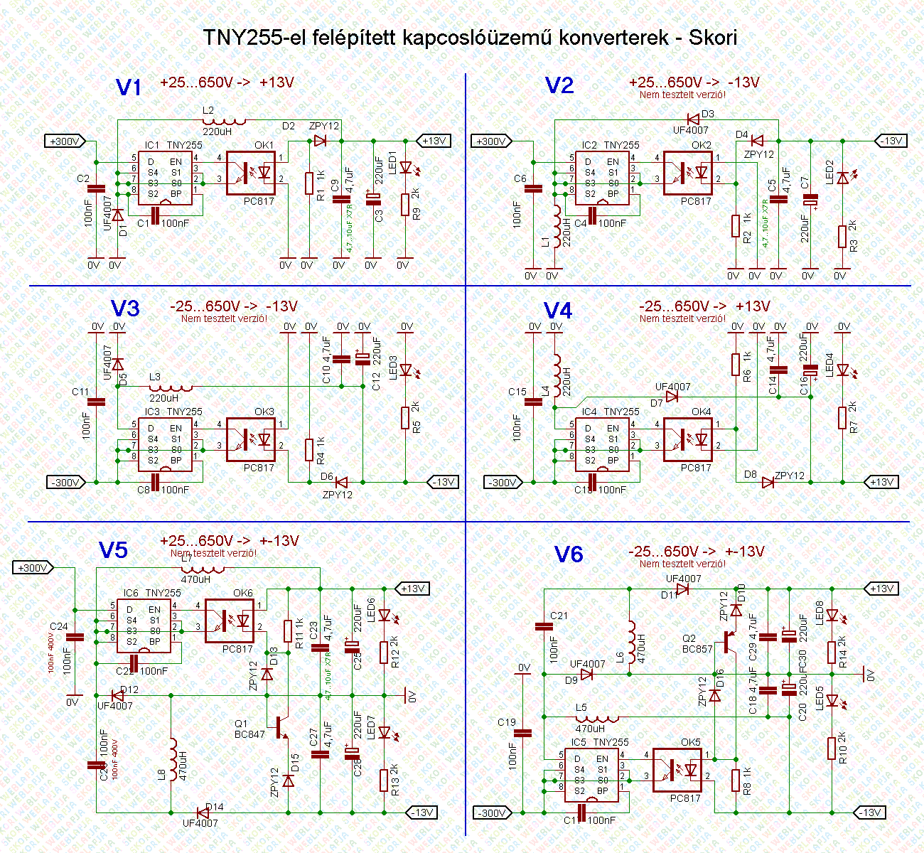 Megrajzoltam a TNY255-re épülõ DC/DC koncverter néhány lehetséges további verzióját (lásd a lenti rajzokat).