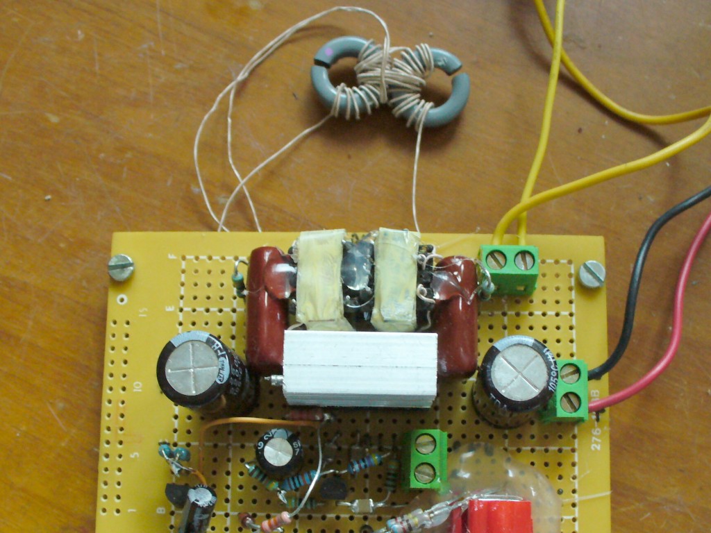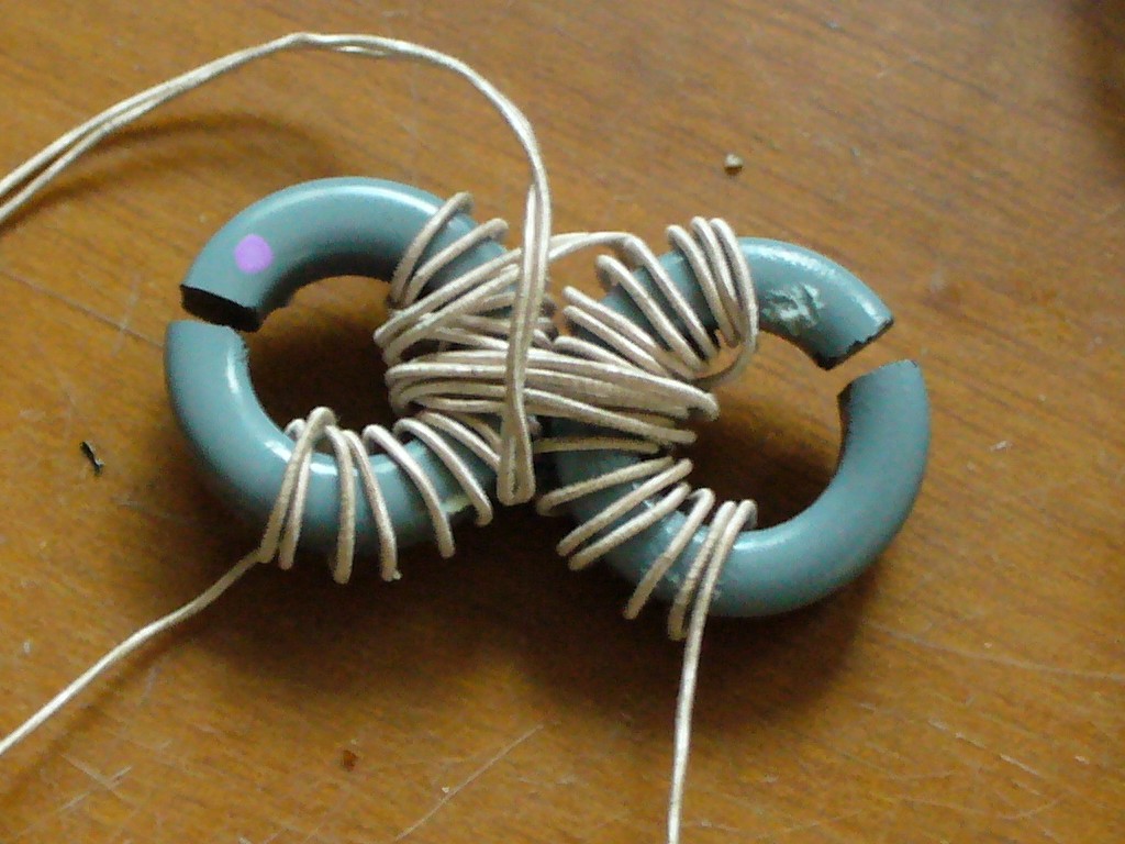 2x 12 menetet tekercseltem fel, ami 2x 6,5uH induktivitást adott, és bekötöttem