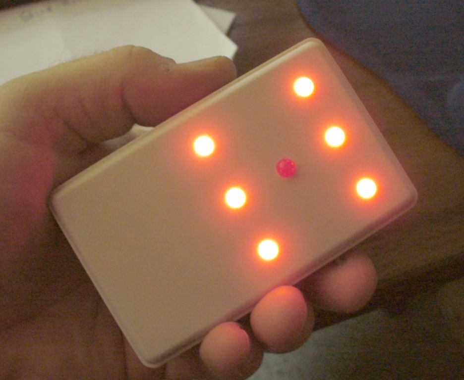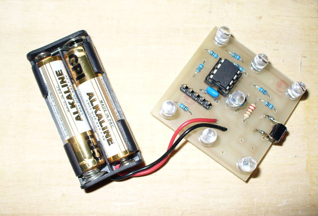 mint ahogy a fotón is látható, amin a dobókocka pöttyeit ledek helyettesítik, és gombnyomás hatására megjelenít
