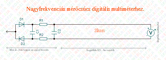 Nagyfrekvenciás áramkörökben a feszültségszintek "megsaccolására" használhatjuk a fenti kapcsolást, párszáz