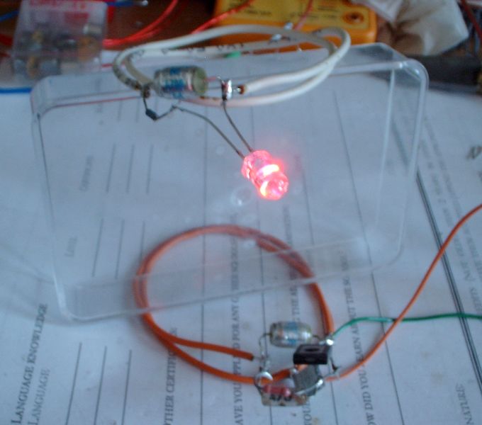az áramfelvétel túl nagy akkor a bázisellenállást növelni kell. A vevő olali leddel, különösen RGB "szinváltós