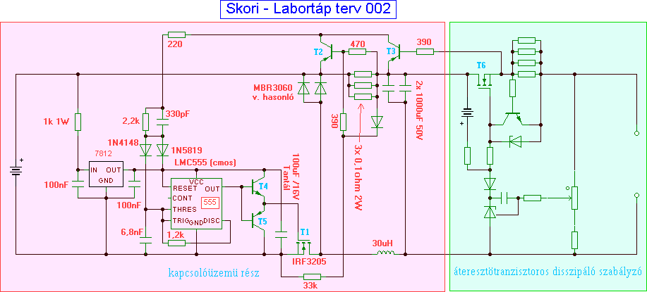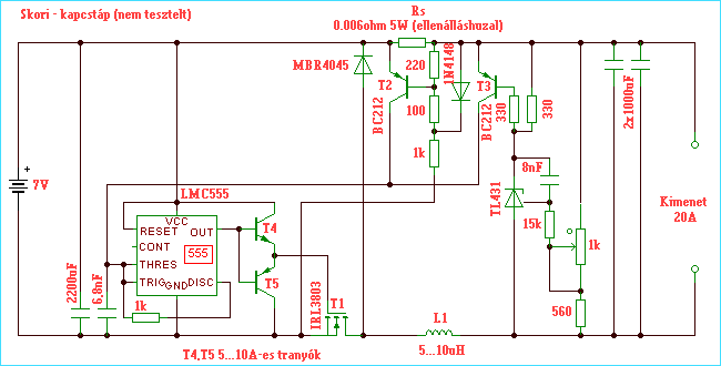 A következö rajz egy kis feszültségü nagy áramú verzió kapcsolása, megépítve/tesztelve nem volt: