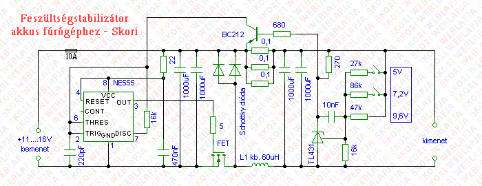 oldottam meg az NE555 IC tápellátását. Egyúttal kicsit módosítottam is az áramkörön, az áramkorlátot leegyszerüsítettem: